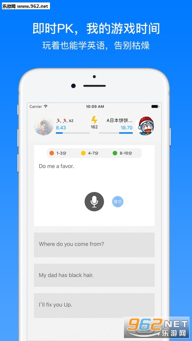 即时PK,和线上小伙伴PK口语。玩着也能学英语,告别学习的枯燥
