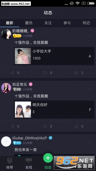 用户可以自由上传录制的音频或者视频作品,也可以跟谱录制作品,将自己满意的作品分享到社区供大家点评膜拜,也可以求助大神指点,或通过附近琴友找到知音互相线下切磋交流。