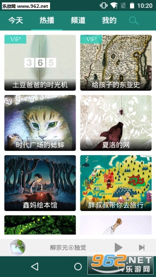 【频道】该部分是经过整理的分类专辑,分为:绘本、文学、英语、儿歌、历史等多个频道。