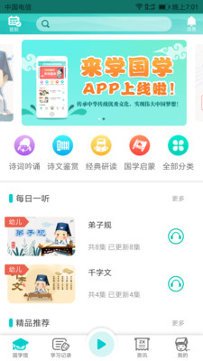 《来学国学app》是一款以国学为核心的学习教育软件,软件的课程非常丰富,包括听语音看视频等多种学习形式。平台内还会举行各种读书活动,让人人都能参与到其中去,有需求的朋友们就快来下载吧!