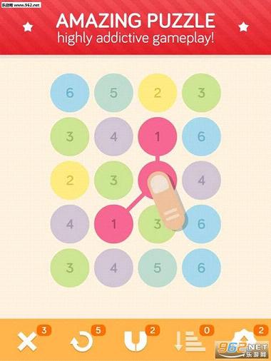 点击相连的相同数字,他们就会浮出来。再次点击,他们会在你点击的地方合并。努力合到13吧,或者更高!