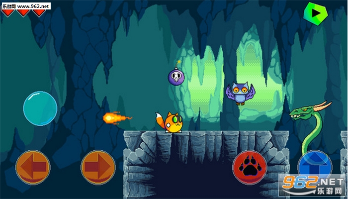 游戏中每个玩家拥有三条生命如图所示的三颗爱心,爱心的个数代表你的生命条数,不仅可以左右随意移动,还能向上“蹿”,不要飞太高,小心空中的会爆炸的炸弹怪物以及其他的飞行生物,玩家遇到了怪物的攻击可以利用手中的武器进行抵消或者发起进攻消灭怪物。