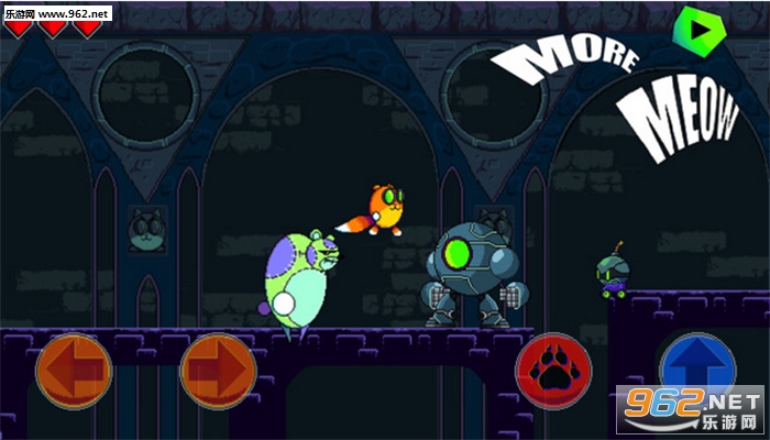 《超级喵星人》游戏中面对各种各样的怪物进攻,你可以选择躲避还是拿起手中的武器抵消。不仅要注意前方,还要留意空中,更要小心脚下机关,稍不留神就被断送至此。在这一路上你会遇到各种意想不到的奇形怪状的魔幻生物,甚至就连德古拉伯爵也会跳出来给你捣乱!