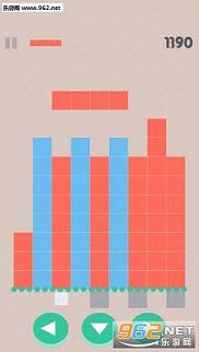 《平坦积木》是一款画面和玩法都颇为休闲的益智游戏,这个积木游戏中玩家无法旋转积木,只能左右移动下落积木的位置。玩家必须将对准底下以下的两个白色小方块进行消除,否则同色积木堆得再高也没用。