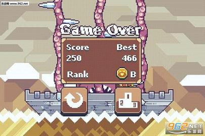 游戏的操作很简单,采用虚拟按键,左边控制左右移动,右边控制砍脚,有两个按键可以分别砍左右两边的章鱼脚。刚开始游戏的时候还反应不过来,三排章鱼脚放在一起,再加上脚上时不时冒出来的尖刺,让人十分的眼花缭乱,一旦静下心来,将画面分成几个部分来看,就能轻松驾驭了。
