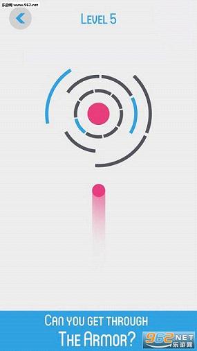 跃入轨道和漂移入多边形领域的盔甲。去除环上的彩色圆圈。玩家需要击中中心的红球就算胜利,外面无色的壳会保护核心,玩家可不要想靠机会取胜,没关的时间和箭都是有限的。