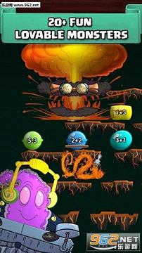 《跟着怪物学数学 Monster Math》是一款寓教于乐的教学类游戏。游戏适合学算数的小朋友玩耍。神奇的外星人又把小怪物的公主抓走了。小怪物要去拯救公主。一路上有许多算术式成为了小怪物的阻碍。快去击败他们!