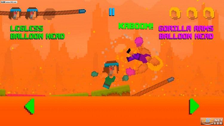 游戏中不仅支持同屏双玩家对战,而且在选项界面中,玩家还可以选择不同的游戏模式,有的模式中双方角色会随机少个部位,比如说少了一双手要想将对方甩下平台可能就没有那么容易了,不过这也让游戏趣味性进一步增强了。此外玩家还可以在更改单人游戏中的按键分布,可以说游戏虽小,但是还是非常完善的。