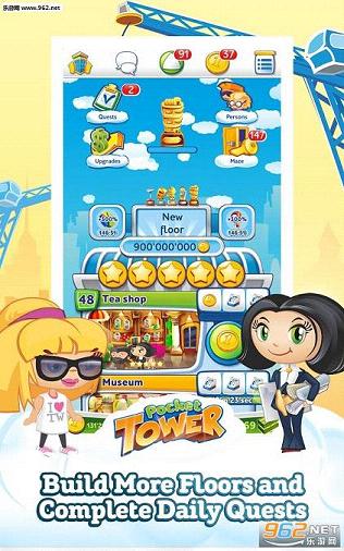 PocketTower是最棒的建筑行业管理模拟游戏,在其中,你将负责修建摩天大楼,并管理入住其中的商业和居民!