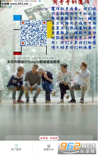 简哥哥魔法app是一款提供免费流量的软件。本软件兼容性强,稳定性高,简哥哥魔法的产品不仅真正可用,并保证低廉的价格,高贵的品质!绿色安全,拒绝后门,简哥哥魔法的产品不会对您的手机造成威胁,也没有恶意强制性的广告。在这里魔法就是流量,提供全新超低价手机运营商流量服务用app一键登录方式给用户提供可拓展甚至无限流量的廉价实惠服务。摆脱高昂上网费用。