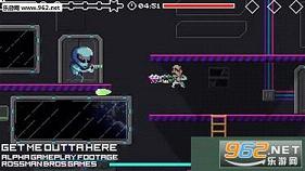 该作可以称为之射击游戏,从剧情一开始玩家操控的大叔就手持着一把外星人激光枪,在飞船仓内与敌人大战。根据开发了这款游戏的兄弟俩的介绍,游戏的灵感来源于众人熟悉的《魂斗罗》。