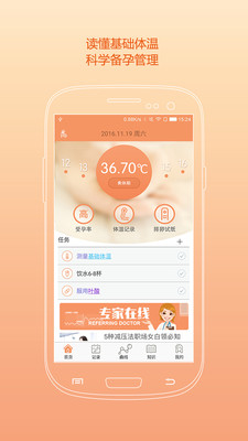 【备孕模式】:孕橙大数据算法通过基础体温精准预测排卵日和易孕期,指导同房时间;根据体温曲线分析黄体功能,提醒和预防先兆流产;支持曲线导出,辅助医生诊断;准确计算预产期。