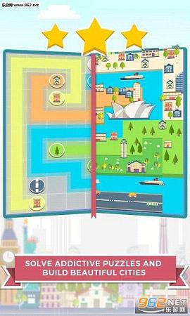 《城市连线 City Lines》是一款益智连线配对游戏,风格亮丽,成功后看城市“冒”出来赏心悦目。