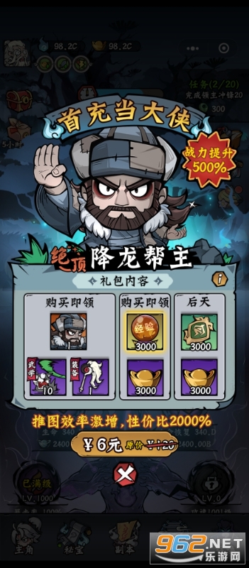 ★仅需0.1折!游戏内所有礼包充值仅需0.1折!首充6分钱就可以获得降龙帮主!