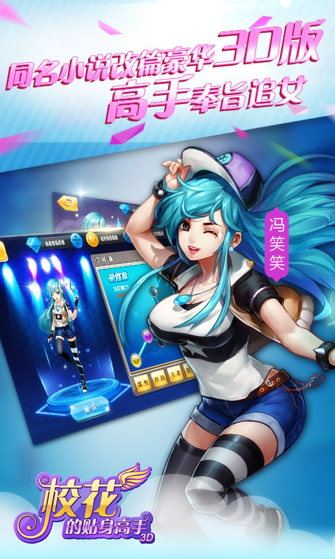 校花的贴身高手3D手游由同名网络小说改编,游戏高度再现了原著中的场景和对话,该作设计了优秀的养成系统、多元化的玩法模式,酷炫无比的画面和情景对话,体验意淫中才会出现的场景,校花环绕的快感。