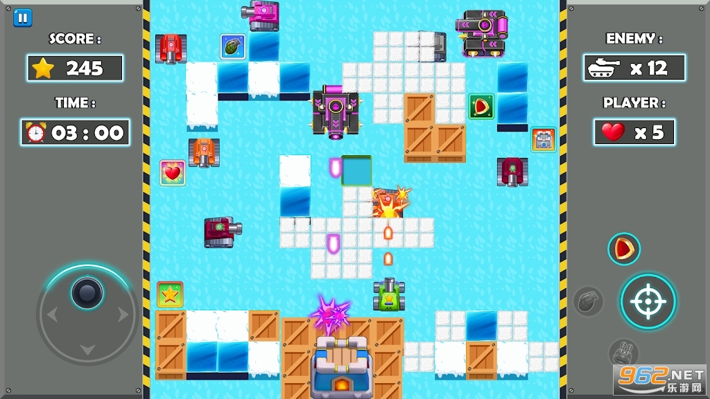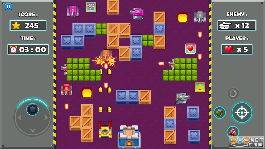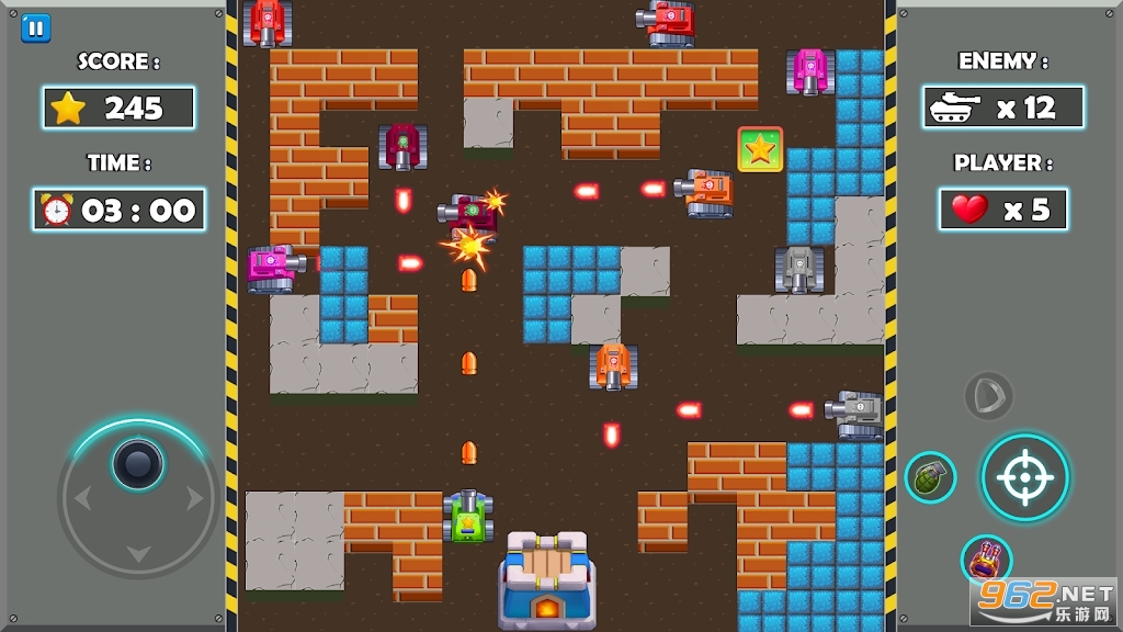 《坦克竞技场》是一款充满趣味和挑战的坦克格斗游戏。玩家将扮演一位军事指挥官,指挥坦克大军进行激烈的战斗。通过收集火炮和战略部署,你将带领你的部队在战场上取得胜利。游戏采用经典的像素风格,让玩家重温童年的坦克大战情怀。