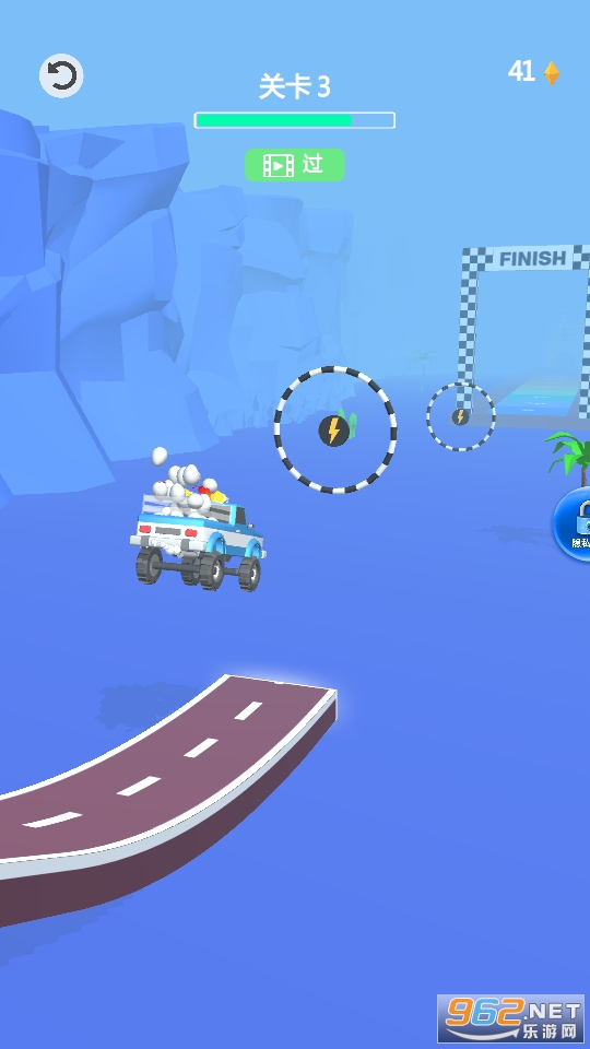 控制着车辆进行冲刺,玩起来非常过瘾,对于道路的曲折弧度要进行精准的把控,尽量的收集更多的钻石,并且保证车辆顺利的到达终点,快来下载吧!