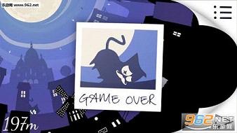 玩家在游戏中需要操作主角猫在巴黎的夜里穿梭于林立的高楼和屋顶,通过滑动让猫顺利地越过障碍,一旦不小心掉落游戏就会结束。