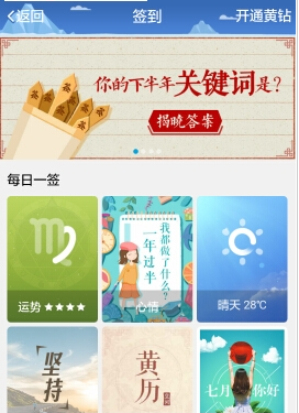 2、点击签到按钮进入签到页面,可以在最上方看到一个“你的下半年关键词”活动;