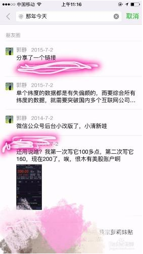 5、页面展现好友在过去几年的今天所发的动态,是不是很神奇呢!