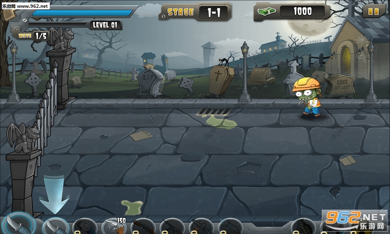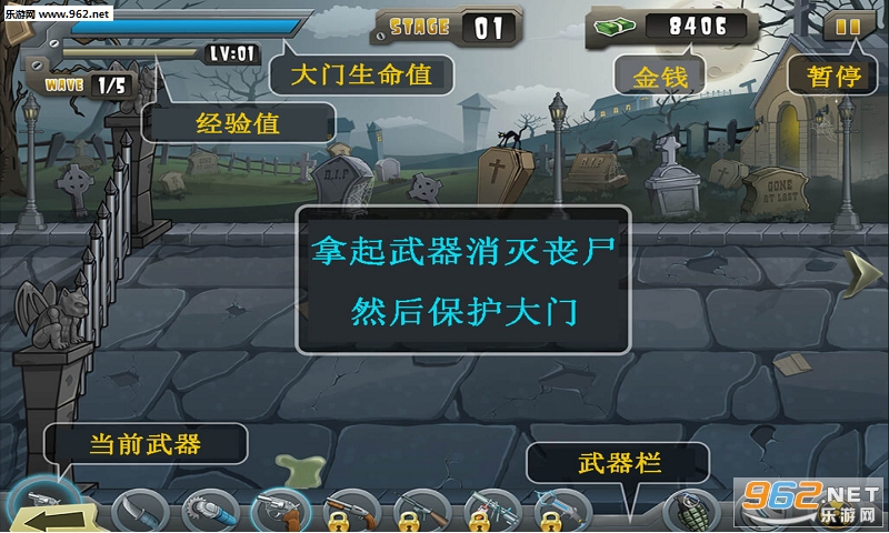 2、你需要扮演一个幸存者,使用丰富的武器去防御丧尸接近大门。