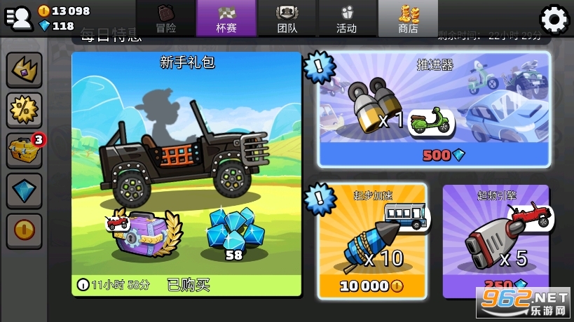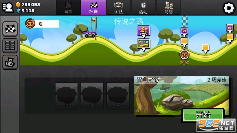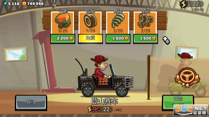 使用 20 种以上的车辆冲上山丘吧!赛车、卡车、摩托车甚至是坦克都任您选择!