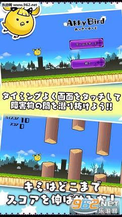 游戏是无尽模式,玩家要做的就是看准时机点击画面调节Akky鸟的飞行高度,从而让她能够避开身边呈合围夹击之势的木头。考验的就是玩家的反应和手速,看是否能不断挑战自我创下飞行距离和分数的新纪录。