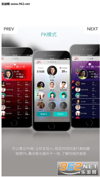 - PK模式,一较高低:可以建立PK房,邀请好友加入,规定时间内进行高抬腿极限PK,集训练与娱乐于一体,激励你不断争锋;