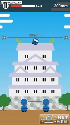 游戏玩法非常简单,开始挑战之后画面上会出现两组分别由两个忍者叠成的人台,他们手中拿着软绳,要用它送绳上的另一位忍者飞天。玩家只要找准时机点击屏幕,那位忍者就会飞到天上,点击的时机越合适他就能飞得越高。这一点主要看手感和经验,实践多了就能玩好。
