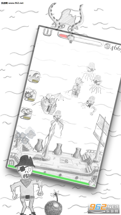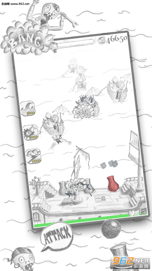 僵尸爆炸是一款让人上瘾的生存街机游戏。黑白纸质的图形给你一个美丽的视觉体验。将你的大炮对准你的僵尸,保卫你的船,并尝试在每个级别中生存。亮点在于画面,采用的是纸质素描画风,滑动屏幕发射大炮,射击距离和滑动幅度有关。
