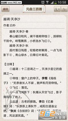 中国文化博大精深,元代就给我们留下了很多优美的词曲,本款软件中有着三百首,喜欢的小伙伴可以在软件中学习一下。