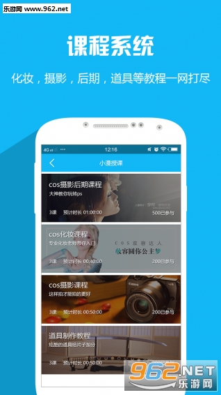 与传统教程不同,我们推出连续性更强的课程系统,化妆,摄影,后期,道具等教程一网打尽,按课时学习让你的技能点Day Day UP.不做手残,从我做起,从看小漫的教程做起。