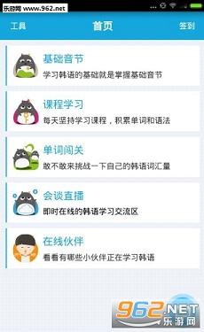 2.多种工具:韩汉翻译、韩文汉字、基础发音等多种学习功能.