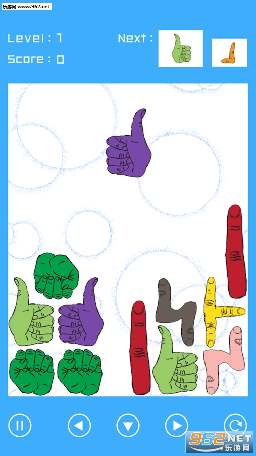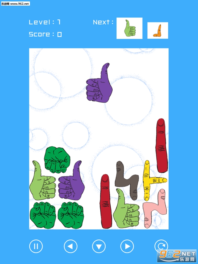 《手手俄罗斯方块Handris!》是一款消除类手游,奇葩的玩法,利用手指的不同造型,一只手掌,摆放成不同的风格形态,完成趣味的消除任务,手指一个个从天而降,俄罗斯方块的经典完成,消除手指,将它们完美的排放在界面中。