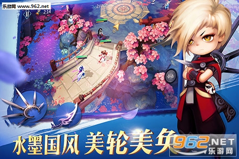 1、游戏人物Q版形象可爱,背景水墨风绘制,制作精美。