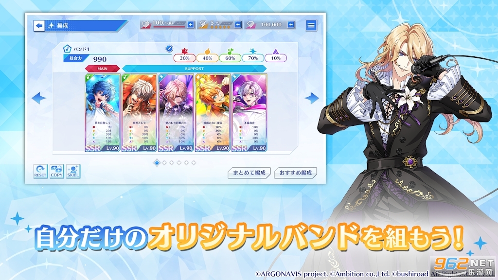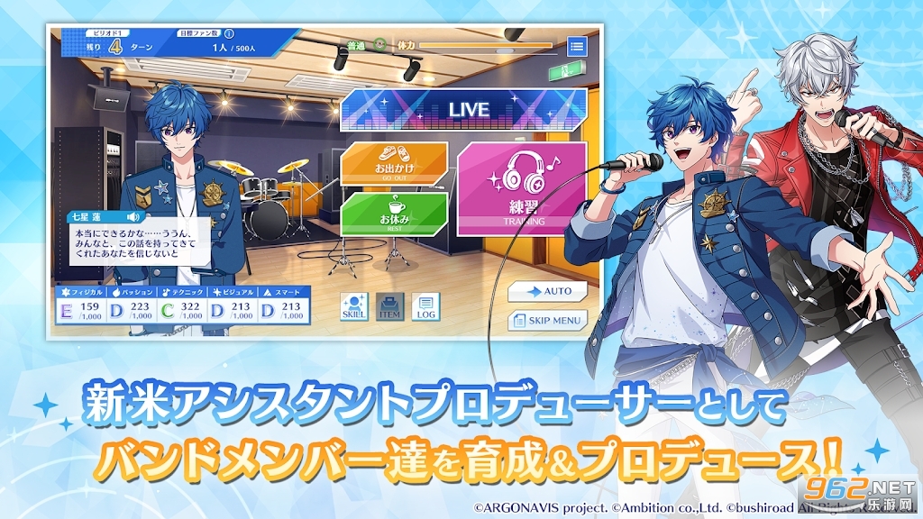 《ARGONAVIS-前往你所见的舞台キミステ》一款以Argonavis新乐队为主角的训练游戏。在这里,你将作为助理制作人,带领这些才华横溢的乐队成员走向事业的巅峰。简单易上手的操作方式,让你轻松享受游戏的乐趣。精美的卡片插图和独特的角色设计,让你沉浸在这个充满魅力的音乐世界中。快来加入这场音乐盛宴,一起追寻梦想,抓住前方的命运吧!