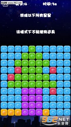 消尽模式——包含三色模式、四色模式和递增模式三个关卡。玩法与经典模式相同,不同的是需要将所有的星星消完才可进入下一关。