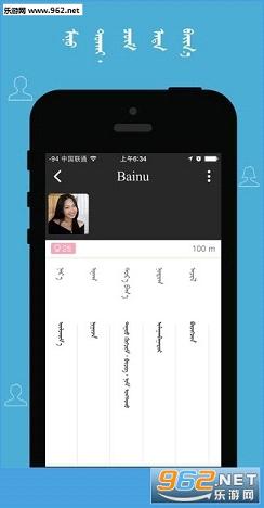 Bainu蒙语聊天是一款以蒙古族人习惯开发的社交聊天客户端应用,在Bainu蒙语聊天您可以认识蒙古族的小伙伴,以纯蒙古语进行线上交流,支持发送语音、图片等,功能强大,快来下载体验蒙古语的乐趣吧!