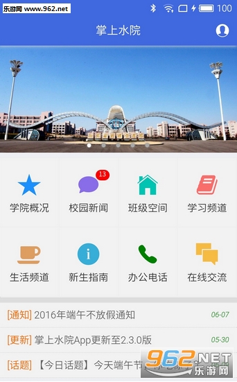 掌上水院app:该软件是一款方便大学生在校生活的手机应用,在平台上大家可以了解到学校的最新资讯新闻,在线学习交流互动,有需要的小伙伴们快来下载吧!