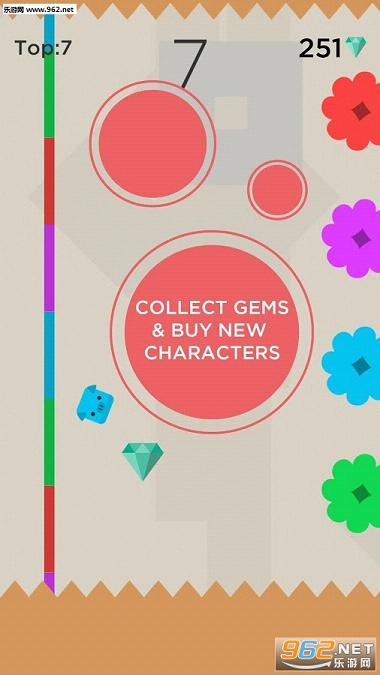 《彩虹跳跃》是个极简风格的无尽类游戏,首先要穿过彩虹线,随机获得一个颜色之后就只能碰对应的颜色,难度相对不是很高,一局能玩的挺久。