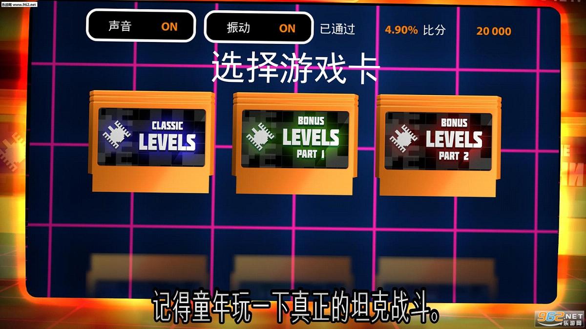 取出橙色游戏卡,将其插入到游戏机玩一下良好的旧坦克获得最大的快感。就像在过去的好时光,你的目标是在每关卡上保卫基地,摧毁敌人的所有坦克。收集奖金,改善你的坦克并向你的敌人表现出真正的坦克战争。