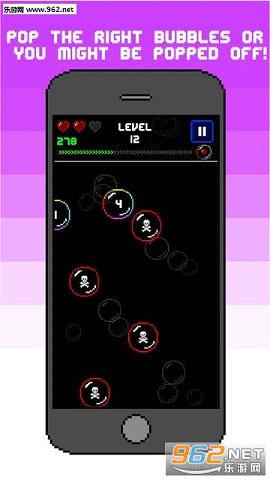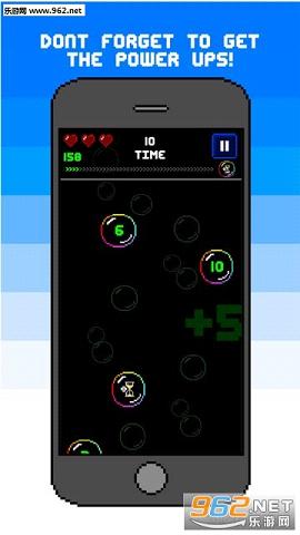 触摸泡沫,将其旋转,并相互碰撞,多次碰撞叠加之后你能够获得更多的积分。但是你要注意,不要去碰撞那些死亡气泡,否则你的生命值将会减少。