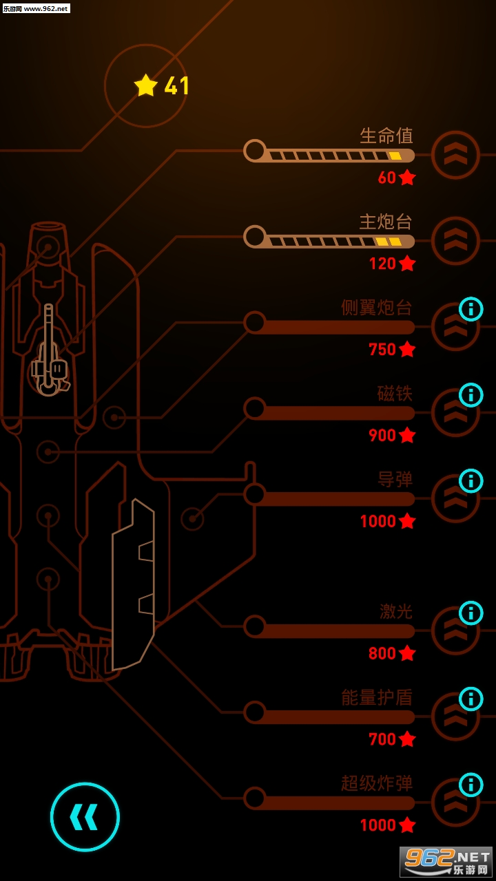 * 升级你的护盾、主炮、导弹、激光、超级炸弹还有磁铁。