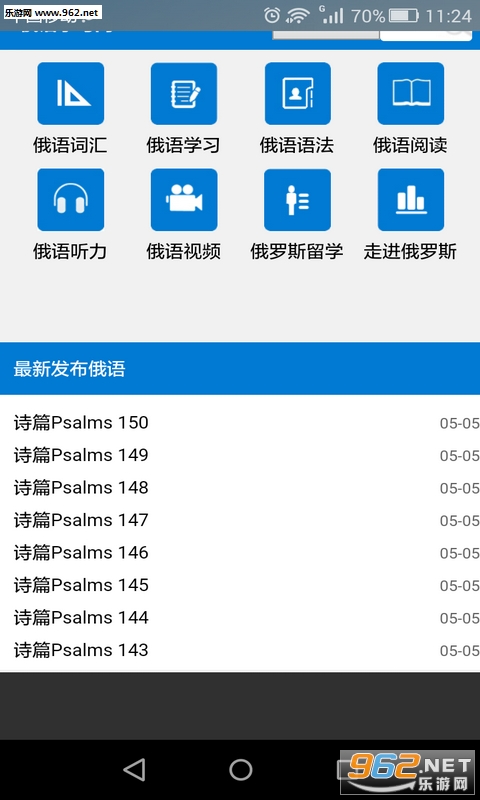 包含俄语词汇、语法、阅读、听力、视频、留学等8大类