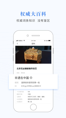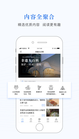 非遗大百科app是由联合国教科文组织非遗领域官方合作伙伴,永新华韵文化发展有限公司开发制作的一款垂直于传统文化领域的内容聚合型APP。