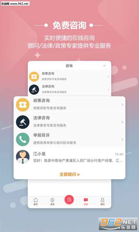 3.免费咨询:以方便快捷的在线沟通方式,找到专业靠谱的房屋顾问,进行全流程贴心服务