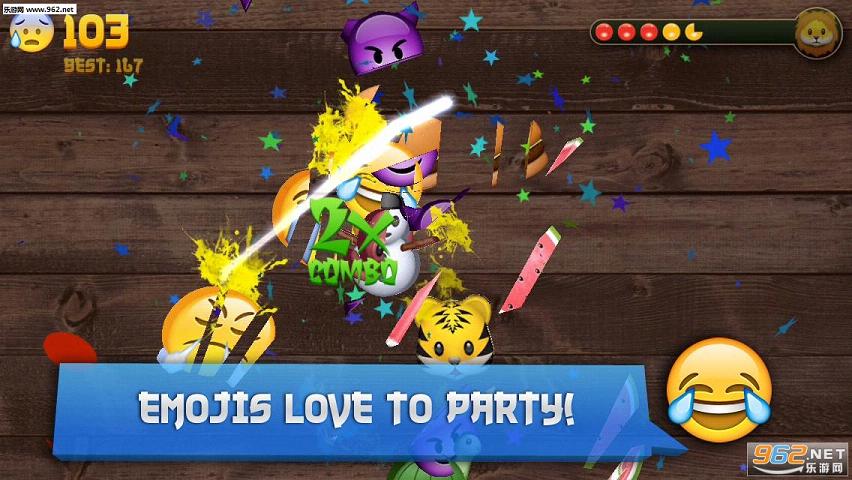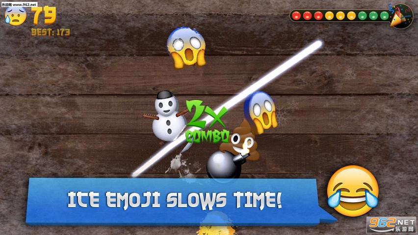 《表情武士》收藏各类表情,并切开它们!表情武士 就是 Emoji 版的水果忍者,这貌似是 iOS 的样式吧?