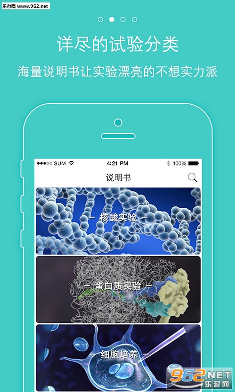 通过下载的Protocol或说明书轻松生成符合您个人习惯和实验室实际情况的个性化实验流程,并通过智能引导界面进行实验操作,记录实验过程、数据,还可以一键生成图文并茂的实验报告,让你的实验过程和实验记录变得轻松惬意,此外还提供了日程计划、试剂用量计算器等小工具,助你养成良好的科研习惯。