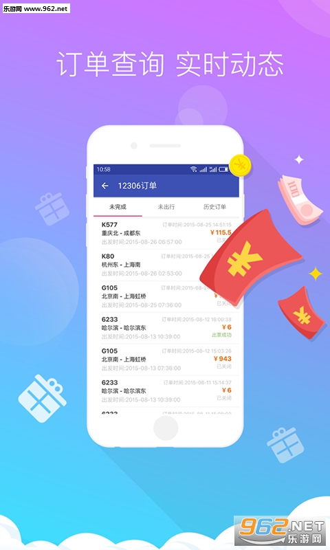 乐游商旅火车订票app是一款专为出行旅游打造的快捷火车订票手机软件,软件采用12306官方数据,实时查询,快速购票,极大的方便广大用户火车出行计划,安全可靠,操作简单!
