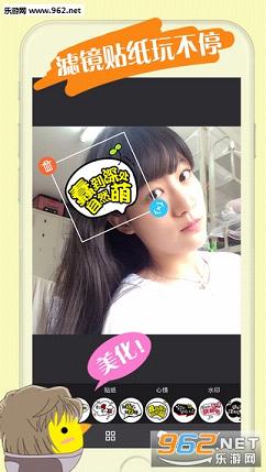 3、「滤镜贴纸」深度定制的专业滤镜,让你的照片瞬间变大片,更有无数贴纸可以贴贴贴;